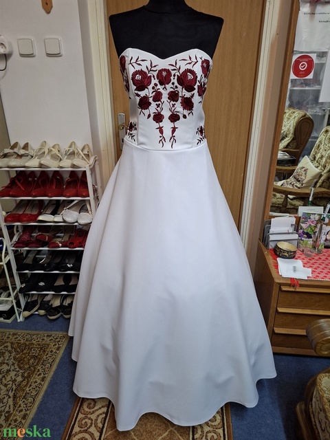 Menyasszonyi, báli, tánc, alkalmi ruha, kalocsai hímzéssel.