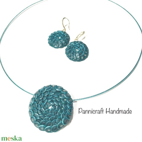 Türkiz-ezüst-gyöngyház gyurma ékszer szett