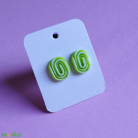 Zöld-fehér geometrikus gyurma fülbevaló