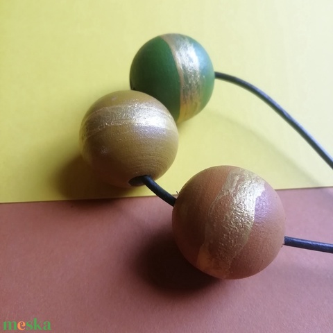 Zöld, mustársárga, arany fa ékszer nyaklánc-KIFUTÓ TERMÉK
