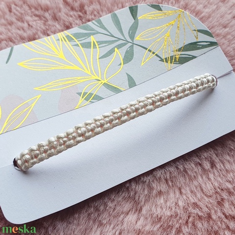 Fonott makramé karkötő - fehér és rózsaszín