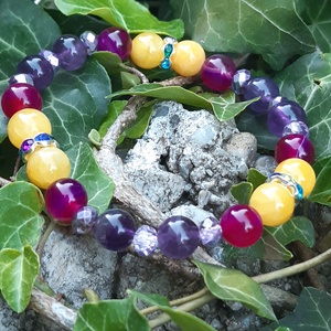 - Anyaga: gumis damil, hematit köztesek, tigrisszem ásványgyöngyök, roppantott hegyikristály ásványgyöngyök, strasszos rondella