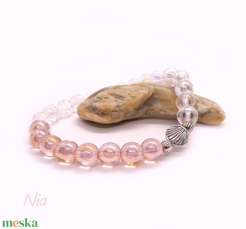Tengerfény - ásvány és üveggyöngy karkötő kagyló medállal