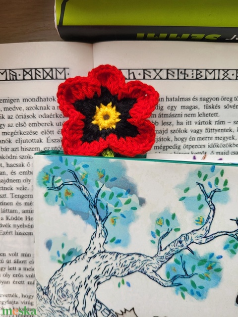 Horgolt pipacsos könyvjelző
