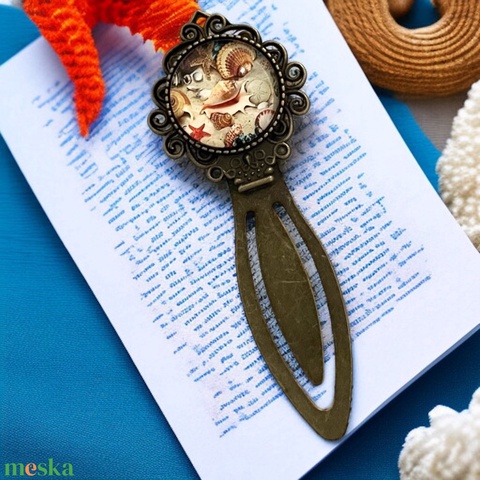 A mélység titka tengeri kagyló mintázatú üveglencsés fém vintage stílusú könyvjelző 5341610