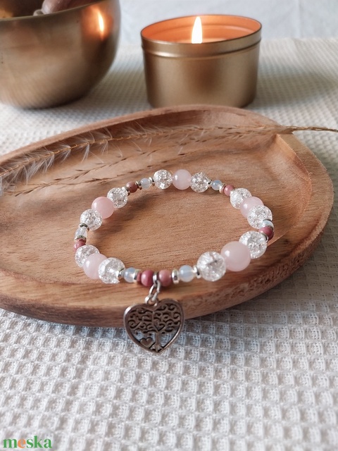 - Anyaga: rózsakvarc, hegyikristály, opalit, rodokrozit, medál, hematit, gumis damil