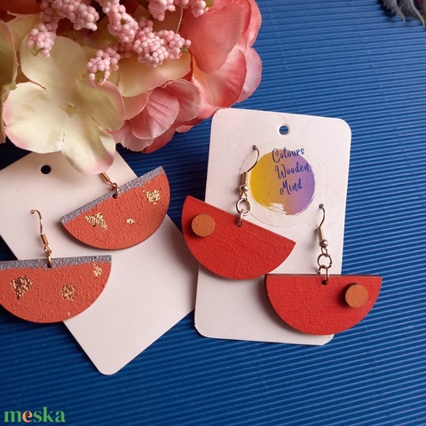 Félkör alakú fa lógós fülbevaló