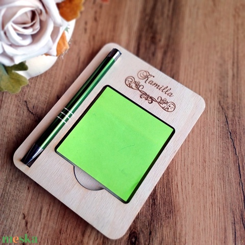 Névre szóló Post-it tartó tollal, névre szóló gravírozással