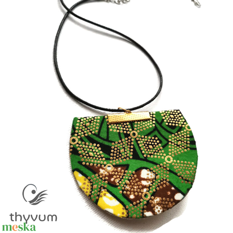 A Florencia medál a karakteres nők számára készült. A medál félkör alakú, színes mintákkal díszített afrikai textilből készült. Eleganciát és egyediséget ad a megjelenésednek.