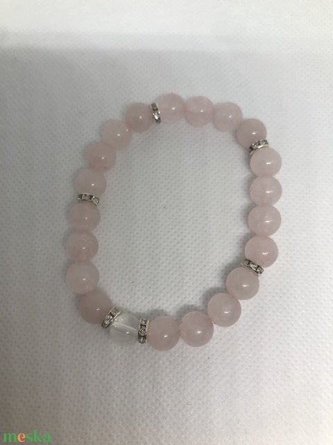 Ásványból készült karkötő - Rózsakvarc és hegyikristály ásványokkal