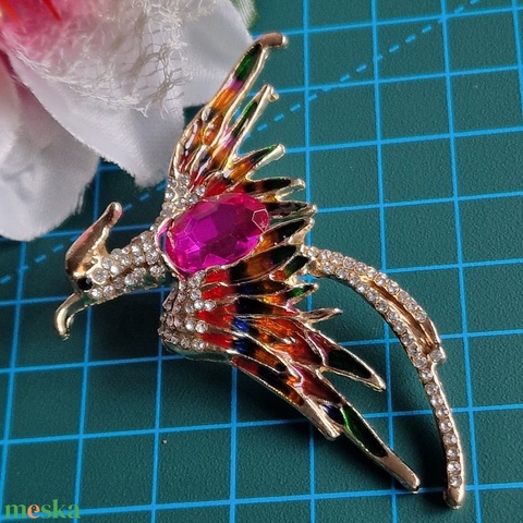 Kitűző, bross BRO253E - Strasszköves tűzzománcos PINK FŐNIX 60x60mm