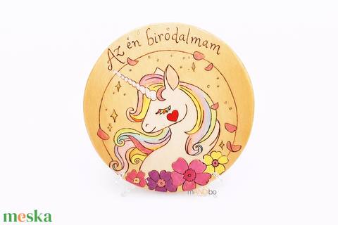 Egyszarvú - unikornis gyerekszoba pirogravírozott kerek kopogtató - falikép