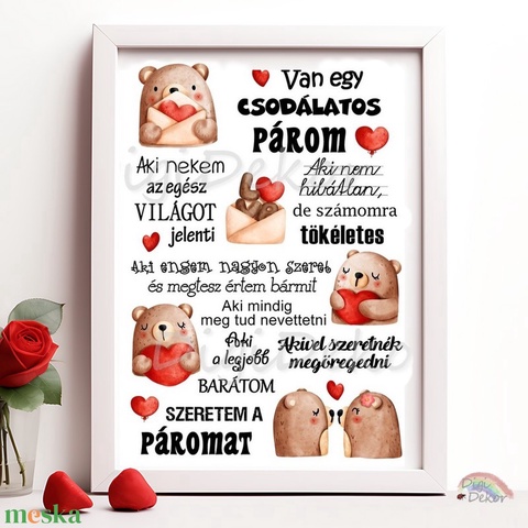 Aranyos, macis-szíves "Csodálatos párom" tábla. A4, A3 print vagy táblakép szerelmeseknek, Valentin napra, évfordulóra.
