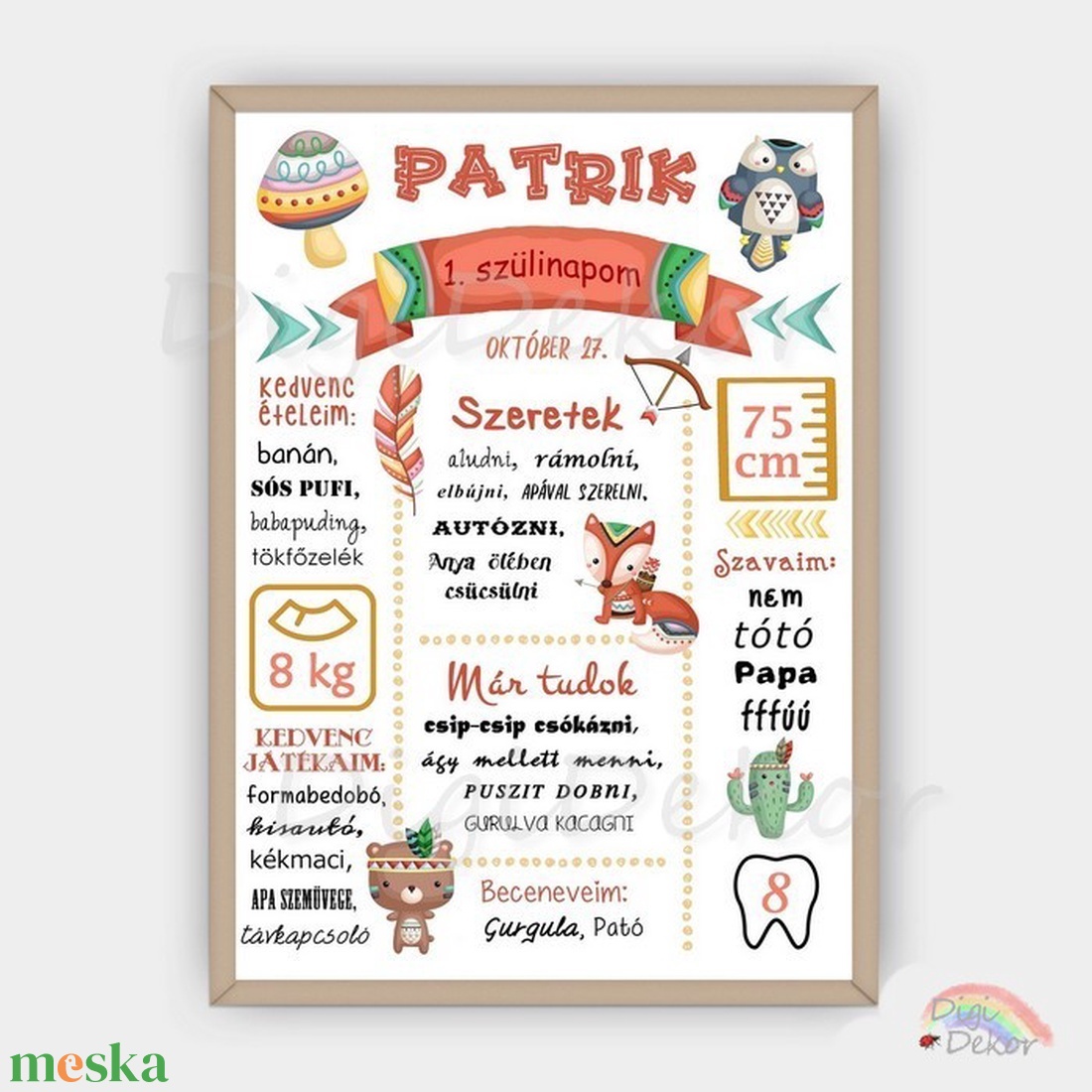 Aranyos, bohém stílusú szülinapi tábla gyerekeknek. Születésnapi poszter, falikép. PDF, A4-es, A3-as print vagy táblakép
