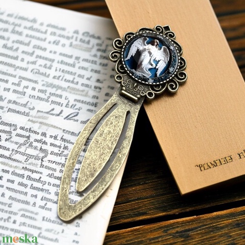Angyal mintázatú üveglencsés fém vintage stílusú könyvjelző egyedi ajándék