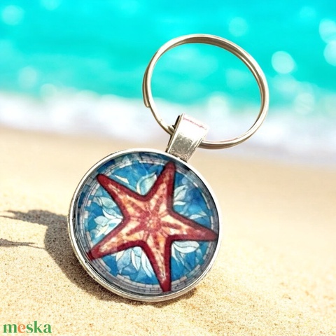 Üveglencsés fém kulcstartó - Tengeri Csillag