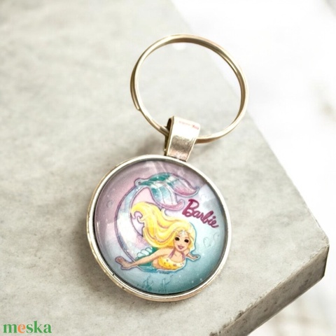 Üveglencsés fém kulcstartó - Hableány Barbie Sellő