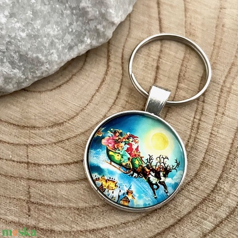 Üveglencsés fém kulcstartó - Mikulás Télapó Karácsony 5347087