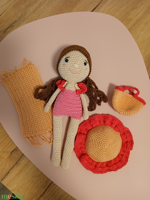 Horgolt baba kiegészítőkkel