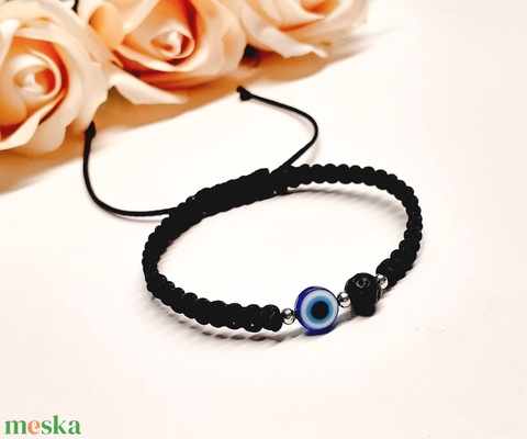 Védelmező Evil Eye karkötő lávakővel, állítható méret