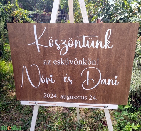 Köszöntünk az esküvőnkön tábla - dió színben