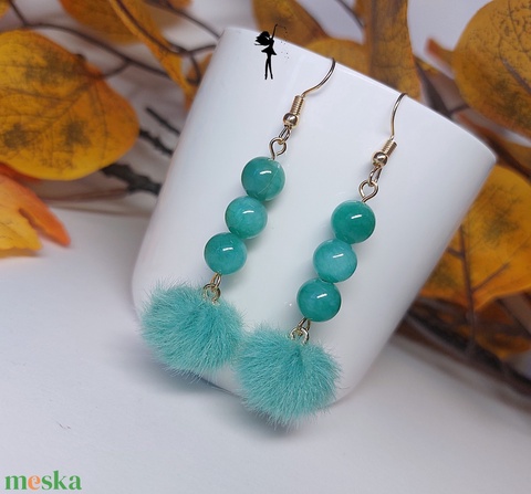 Élénk zöld színü pomponos ásvány fülbevaló jadéból