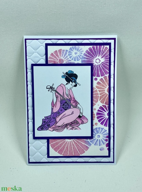 Japán hölgy képeslap, zene, zenész, gésa, samiszen