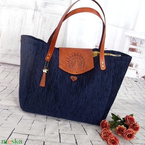 Nagy méretű pávás válltáska, Nagy pakolós táska az éjszaka színében, Shopper, Utazótáska, Mindennapi táska
