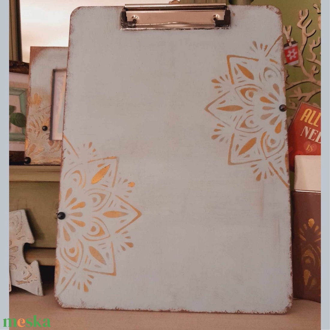 Többfunkciós, kék, mandalás felíró tábla (irattartó lap) fából ajándék digitális mantragyűjteménnyel és kollázsalapppal