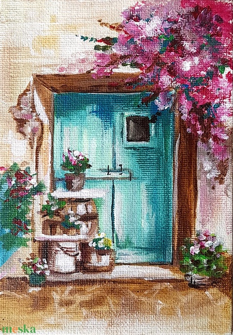 Ajtó a virágra - akrilfestmény vintage stílusú keretben