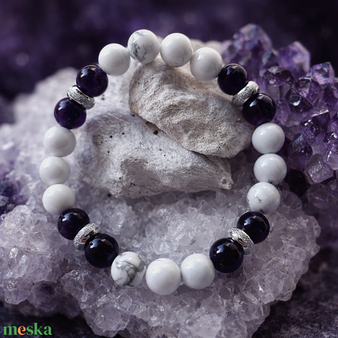 Howlit-Ametiszt ásvány karkötő