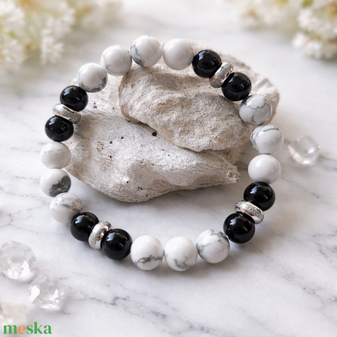 Howlit-Ezüst obszidián ásvány karkötő