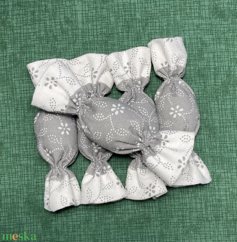 Textil szaloncukor - fehér-szürke - 5 db