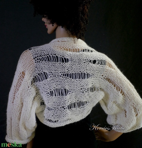 CAMEA SHRUG - bohó mohair boleró, kézzel kötött grunge kardigán / fehér