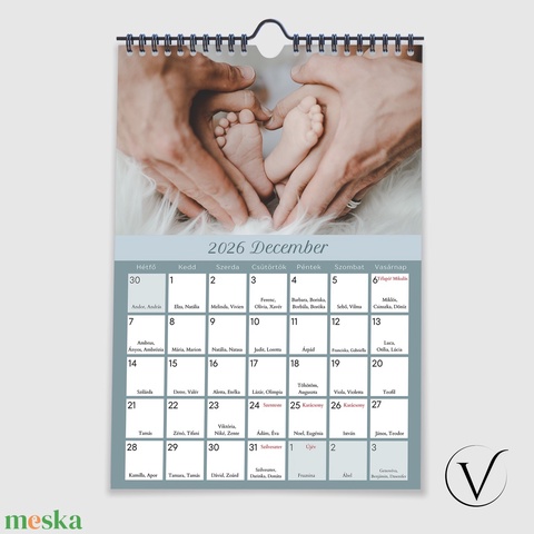 Fényképes naptár névnapokkal, ünnepnapokkal 2026