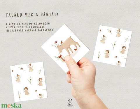 Klasszikus készségfejlesztő memóriajáték, a kedves téli grafikával illusztrált karácsonyi kártyákkal varázslatot csempészhetsz az ünnepi készülődés pillanataiba. A játékot ugyanúgy kell játszani, mint bármelyik más memóriajátékot, a játék célja minél több párt megtalálni és a legtöbb lapot összegyűjteni.