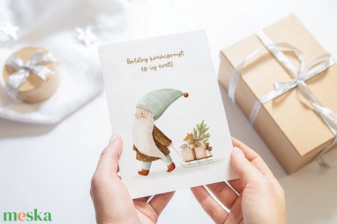 Karácsonyi képeslap, mikulásos üdvözlőlap, ajándékkísérő szett 3 db