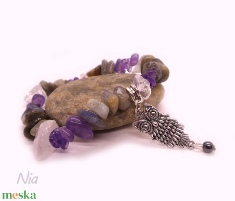 Augusztusi éjszakák - ásványkarkötő bagoly medállal