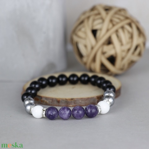 - Anyaga: lepidolit, ónix, tejkvarc, hematit
