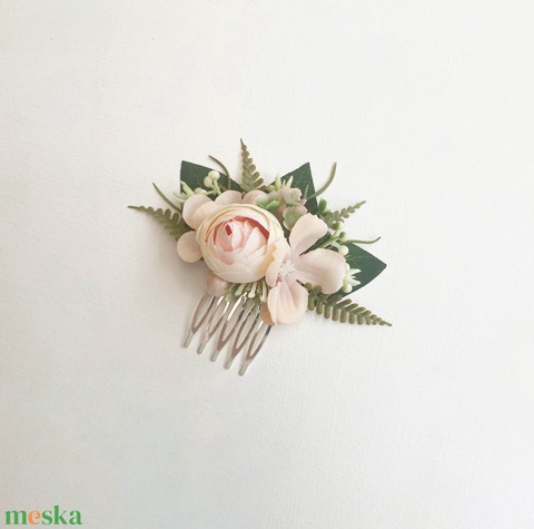 Menyasszonyi selyemvirág hajdísz púder