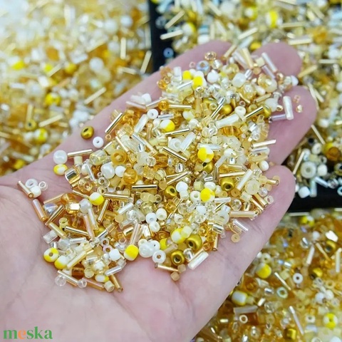 Üveggyöngy csomag 1-4 mm vegyes forma, méret - sárga