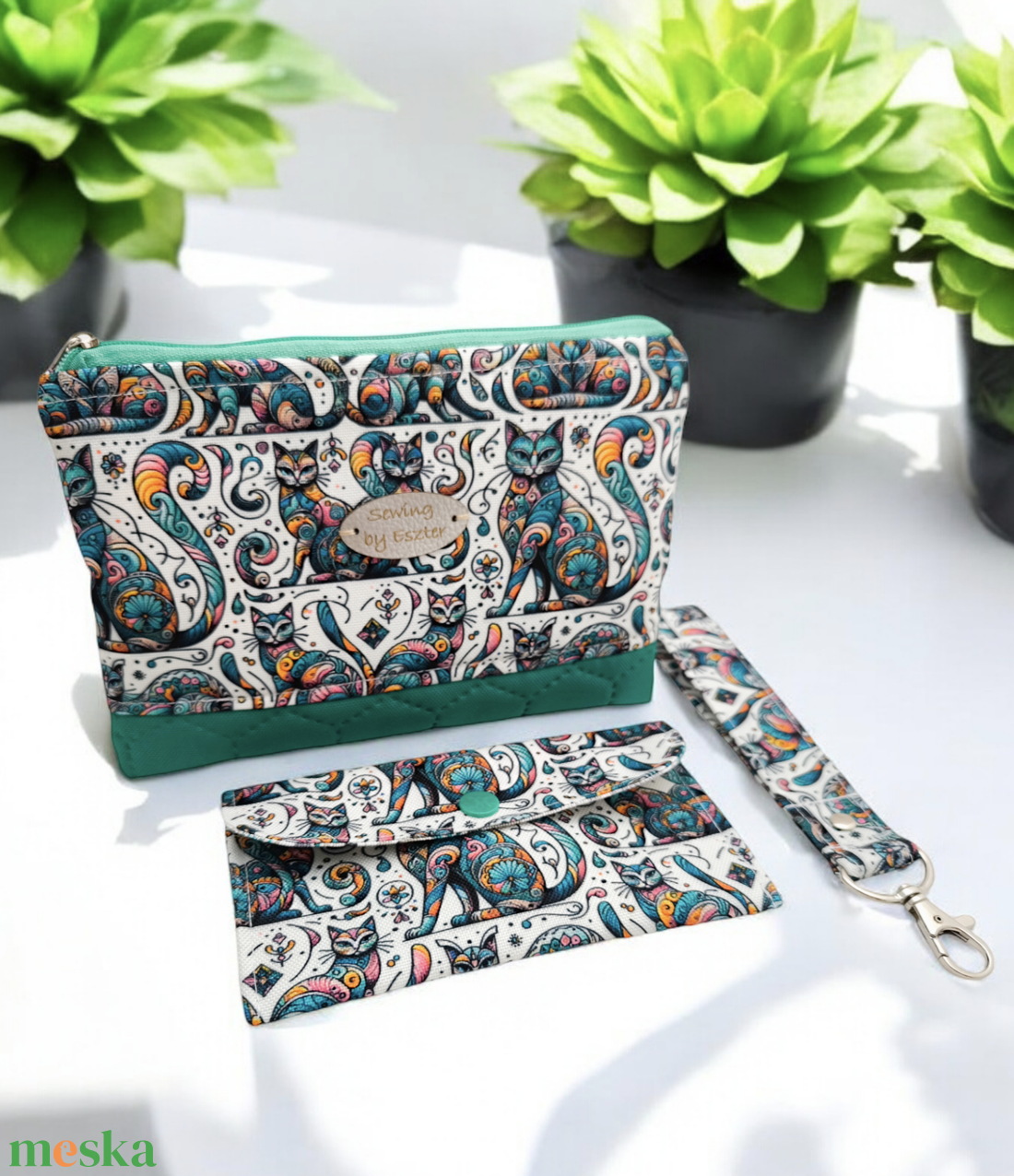 Mandala mintás cicák női neszesszer - Zöld
