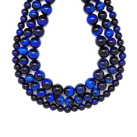 Tigrisszem szinezett sötétkék golyó 10-11mm– ékszerkészítő alapanyag (füzér)