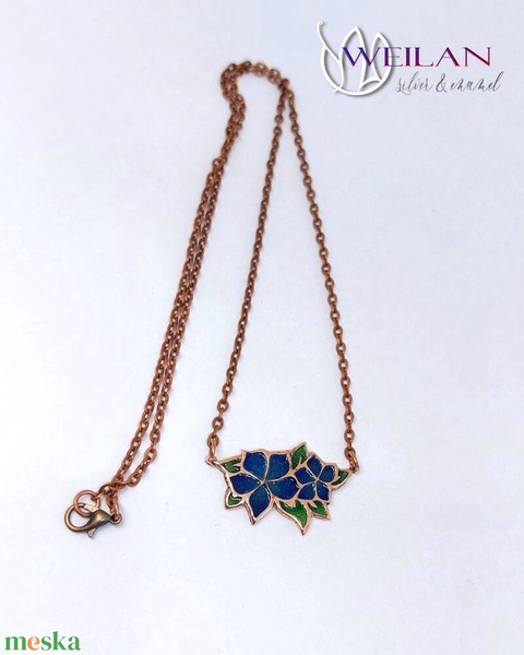 Flora - Nefelejcs bronz, tűzzománc nyakék, láncon - sötétkék