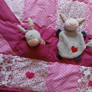 Rózsaszínű csajos baba takaró, a név kezdő betűjével és meglepi zsebekkel játékoknak 150x200 cm személyre szabott