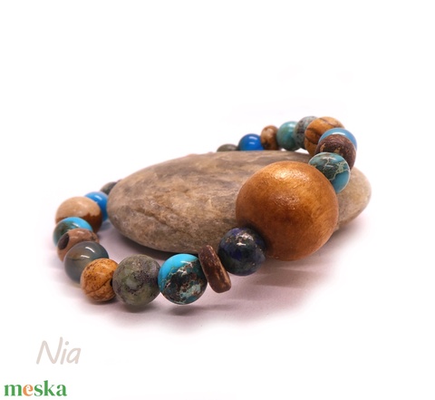 Kék lagúna - ásvány és fa karkötő fém részek nélkül