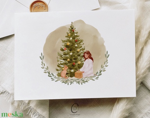 Karácsonyi képeslap, natural üdvözlőlap, macskás ajándékkísérő szett 3 db