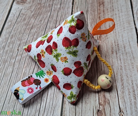 - Anyaga: pamut textil, tömőanyag, szalag, hímzőfonal, fa gyöngy, fa karika