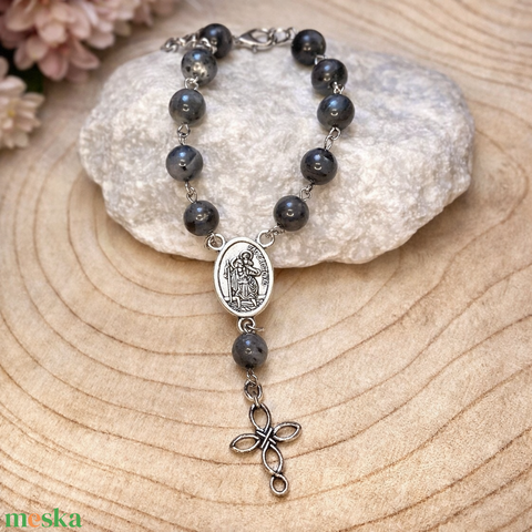 Szent Kristóf autós rózsafüzér, tizedes rózsafüzér labradorit ásványból 5366049