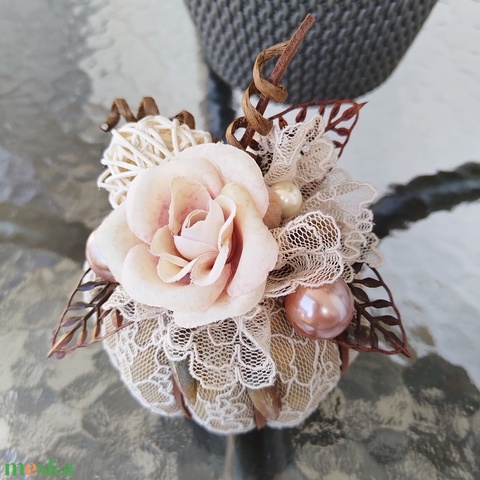 - Anyaga: polisztirol tök, csipke, selyemvirég